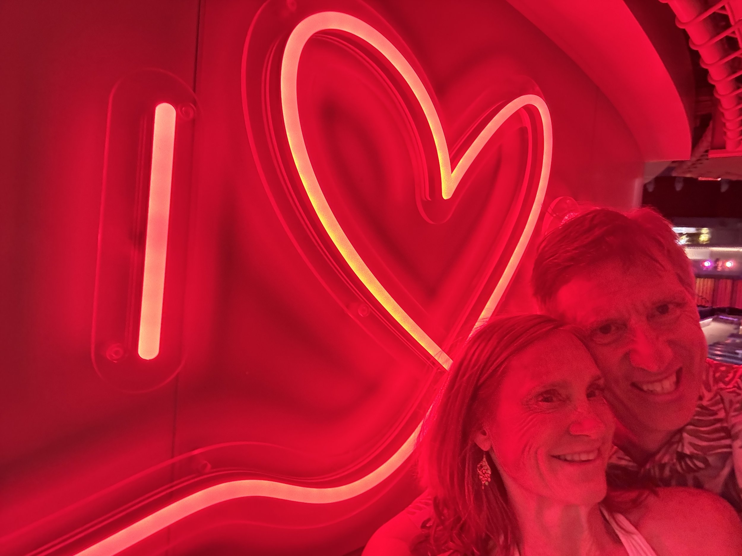 Our cruise included singles, couples and friend groups, LGBTQA+ cruisers and (clutches pearls) folks in alternative relationship lifestyles. One of the “things” that fascinates social media about Virgin Cruises is the amount of upside down “pineapples” on doors. And while we met people on board who self identified as being in open relationships, we didn’t see one pineapple on a door and certainly no one was wandering around knocking on doors looking for partners! If that behavior is happening, as the kids say “There’s an app for that”
