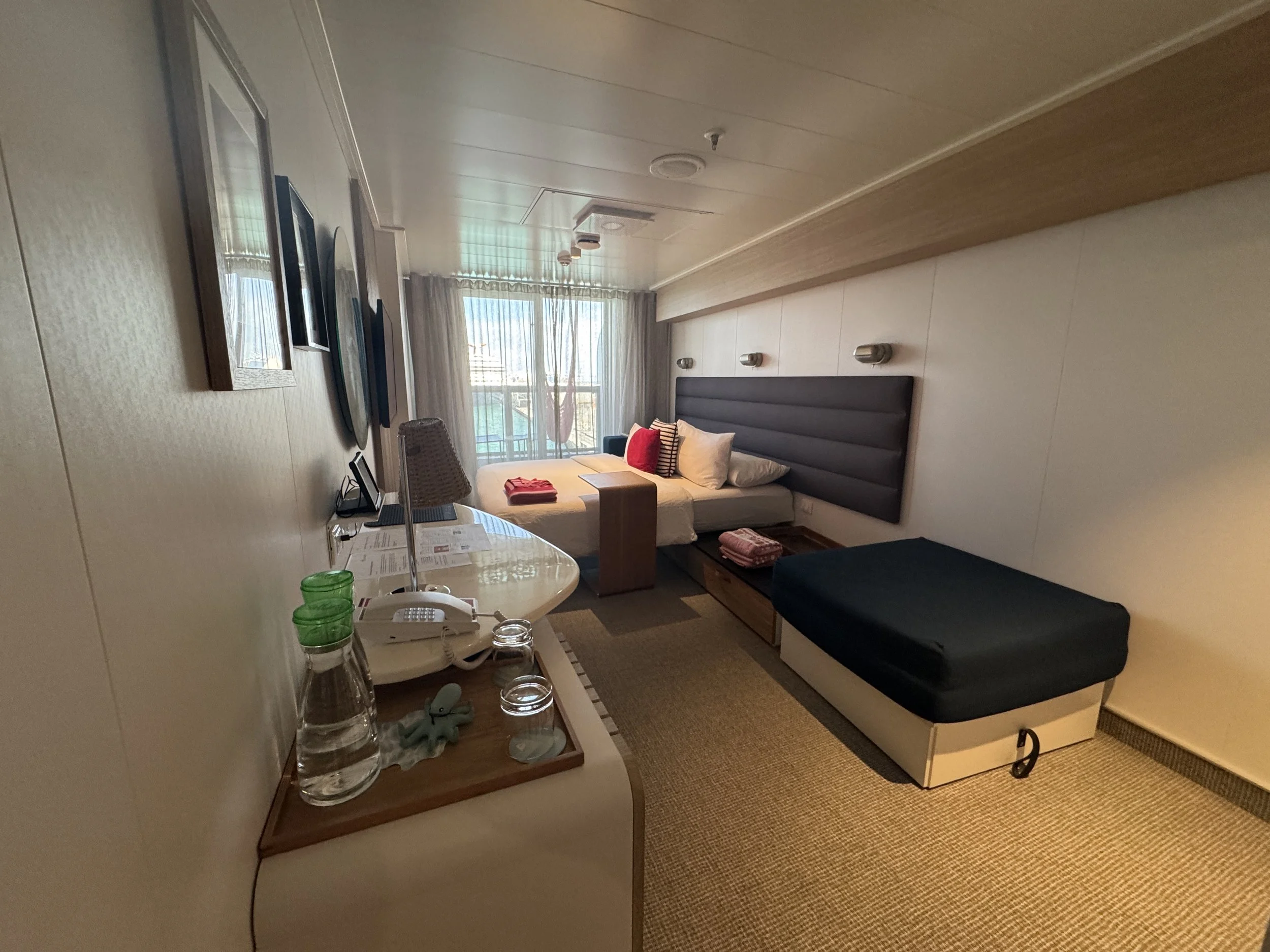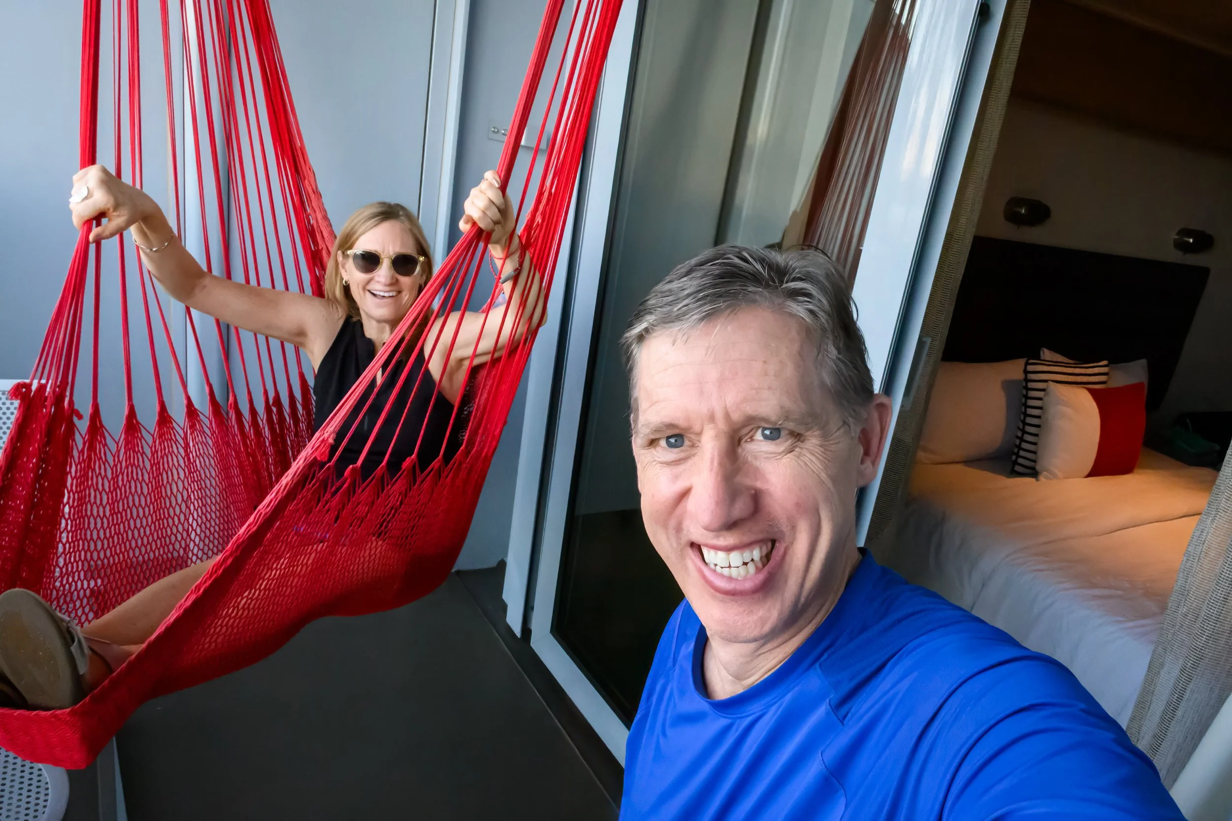 We had an XL Sea Terrace and loved the iconic red hammock that’s on most Sea Terraces and the larger bath with 3 separate component areas, with a large vanity sink area and shower and toilet behind their own doors, we found this to be the easiest cruise ship bath to share that we’ve ever had on any ship!