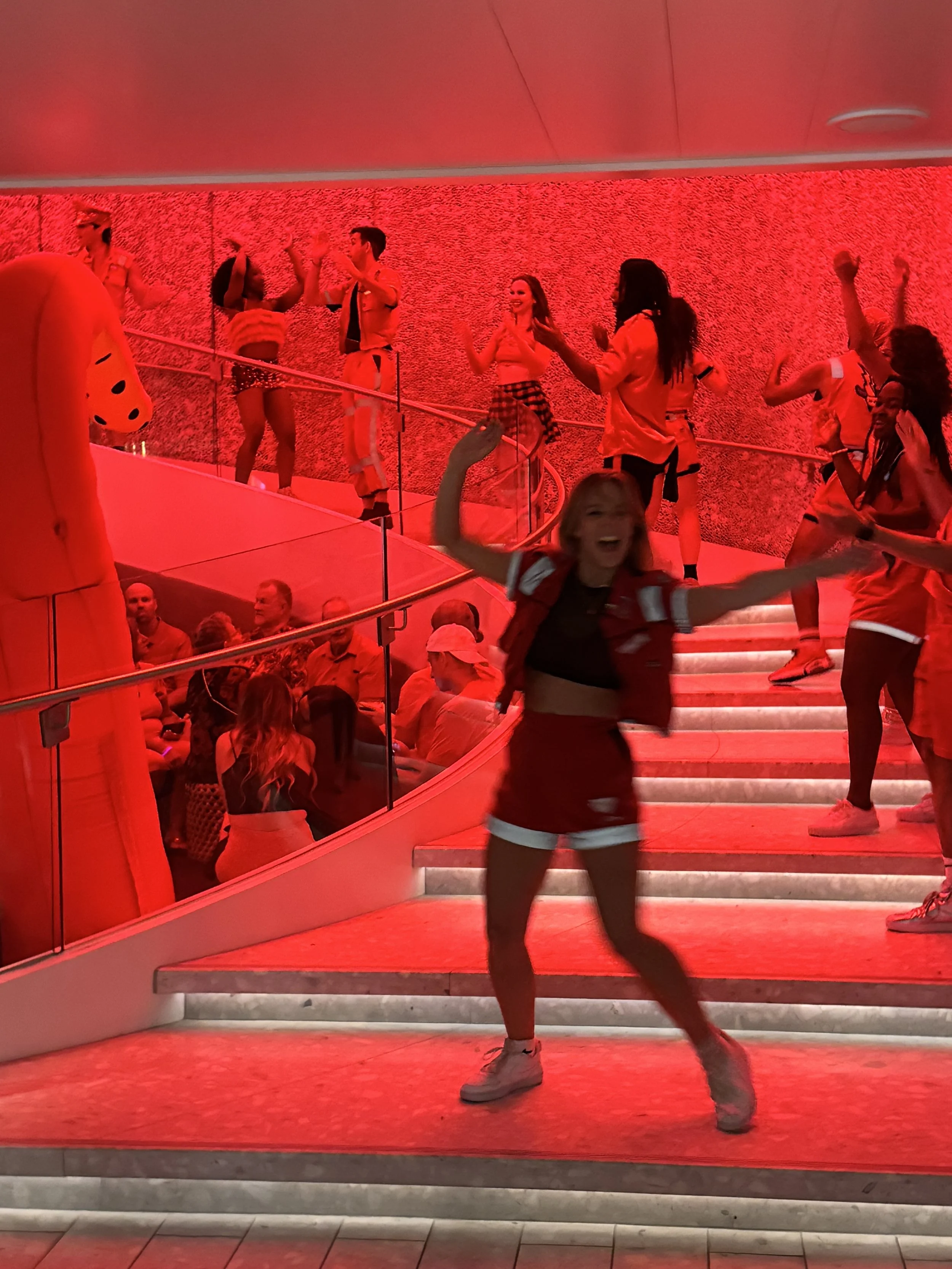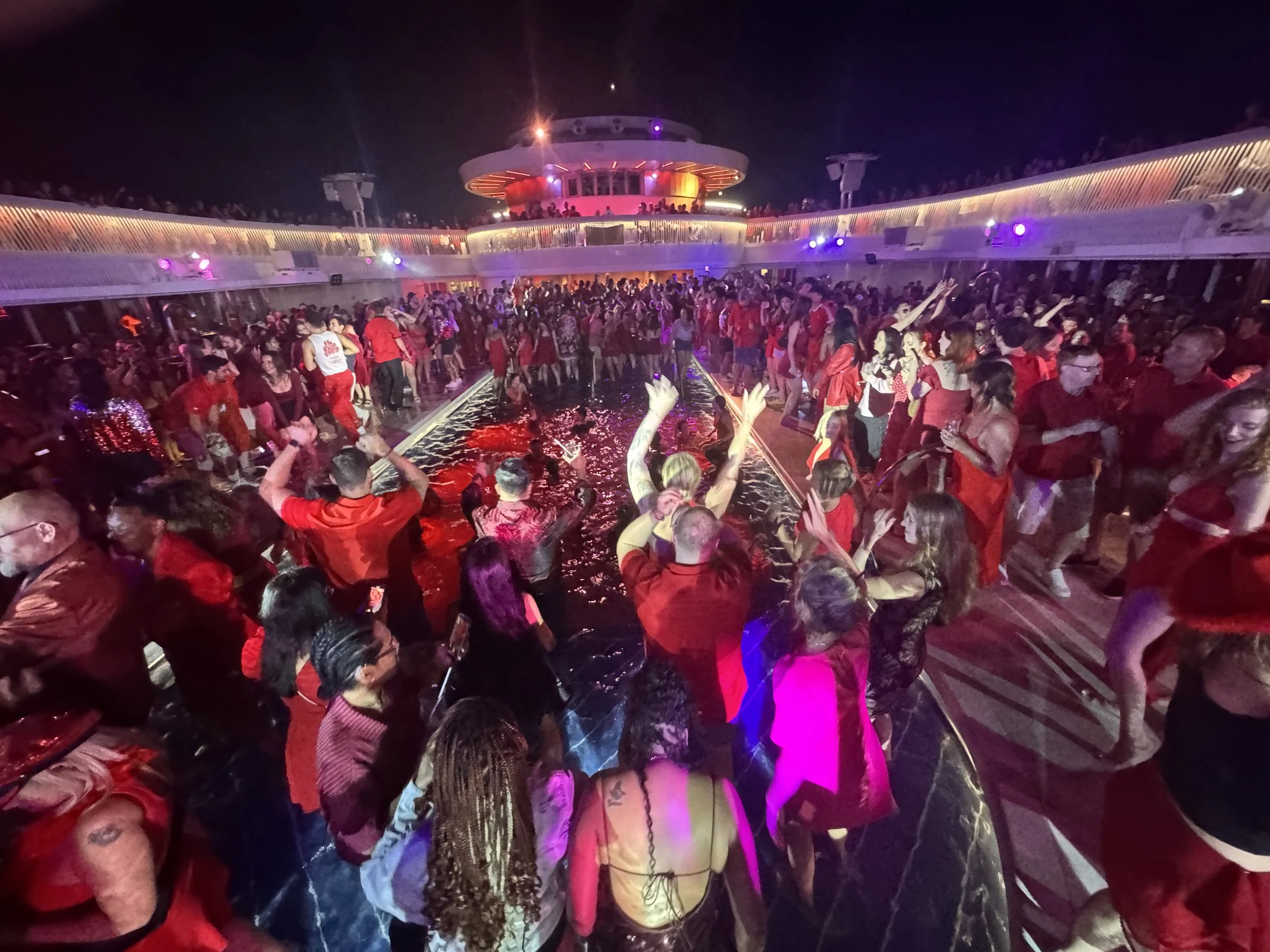 But the most lit party of the week, the climax of the cruise, is the Scarlet Party. Based on a legend, which is explained and reenacted throughout the ship in different ways, in various lounges on Scalet Night, it’s good to attend at least one of these short pre party pop ups before the party so you are “in the know”! Despite no dress code, it was hard to find a single person who is not wearing red the night of Scarlet Party. The pool party is some of wildest “acceptable” behavior I’ve witnessed at a party at sea! People letting loose, connecting, jumping into the pool fully clothed, and dancing in every corner of the pool deck.