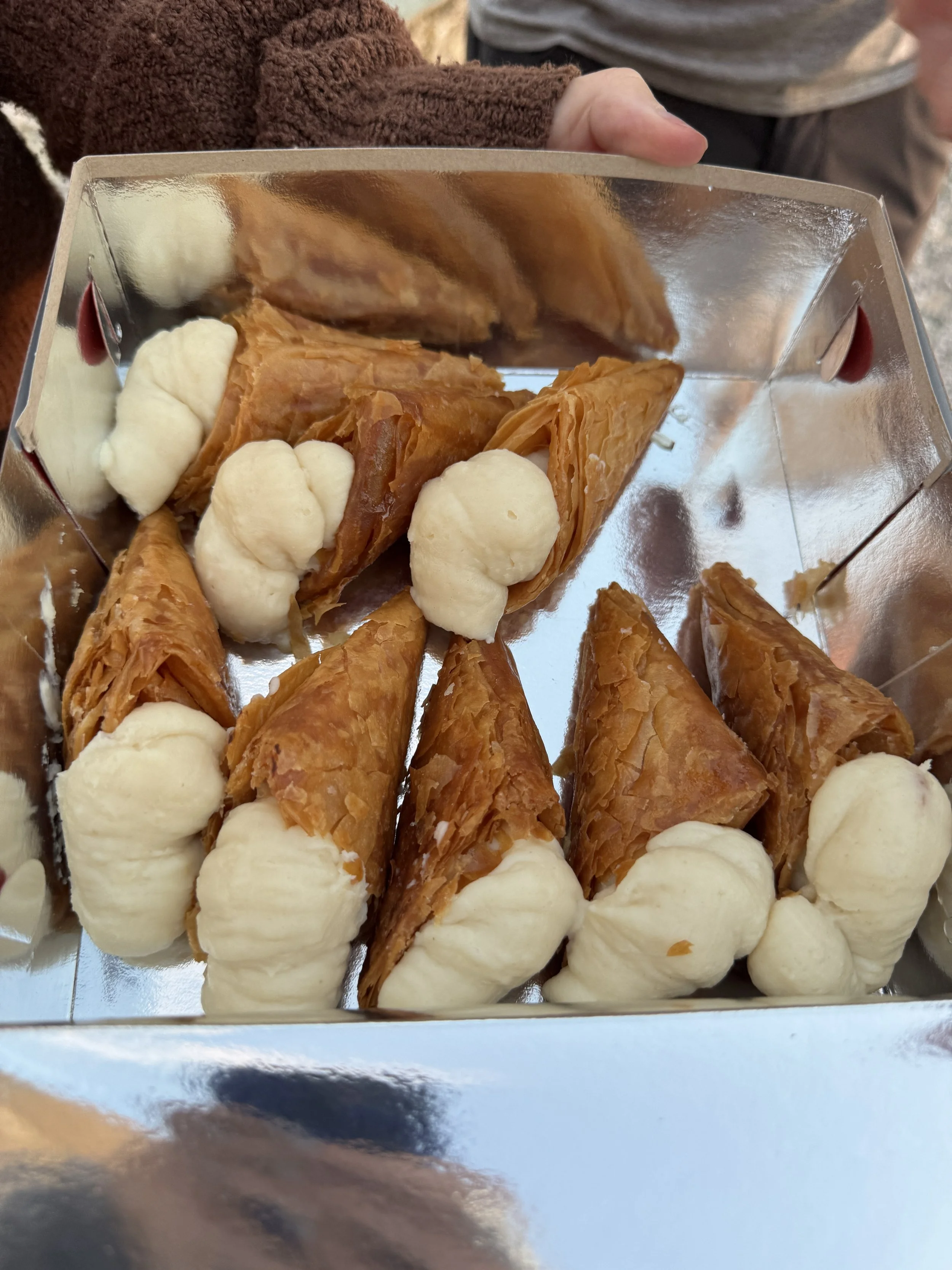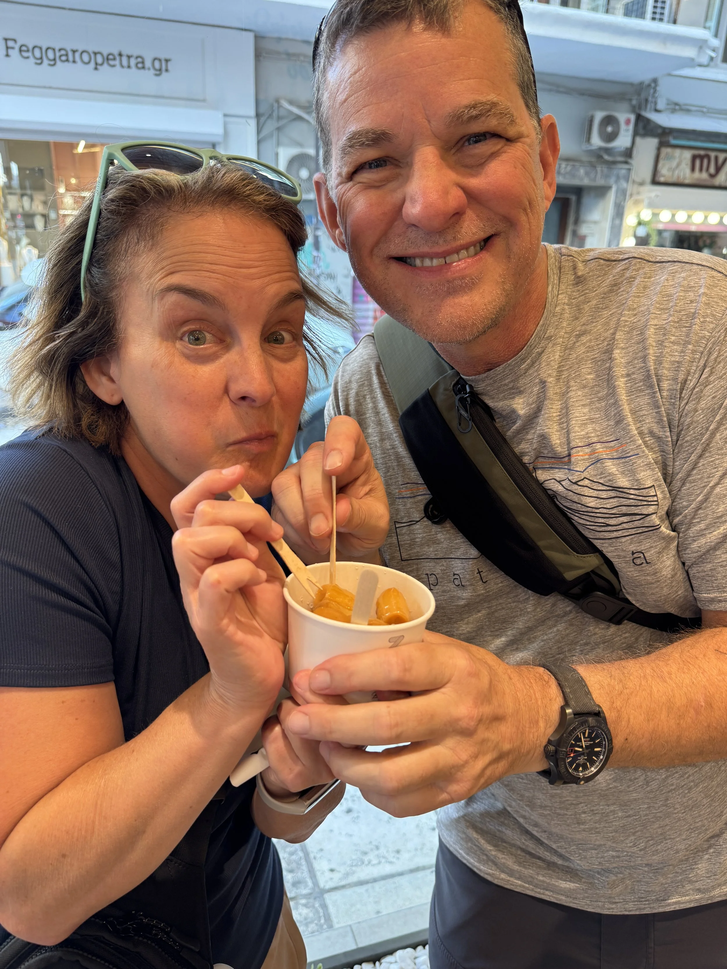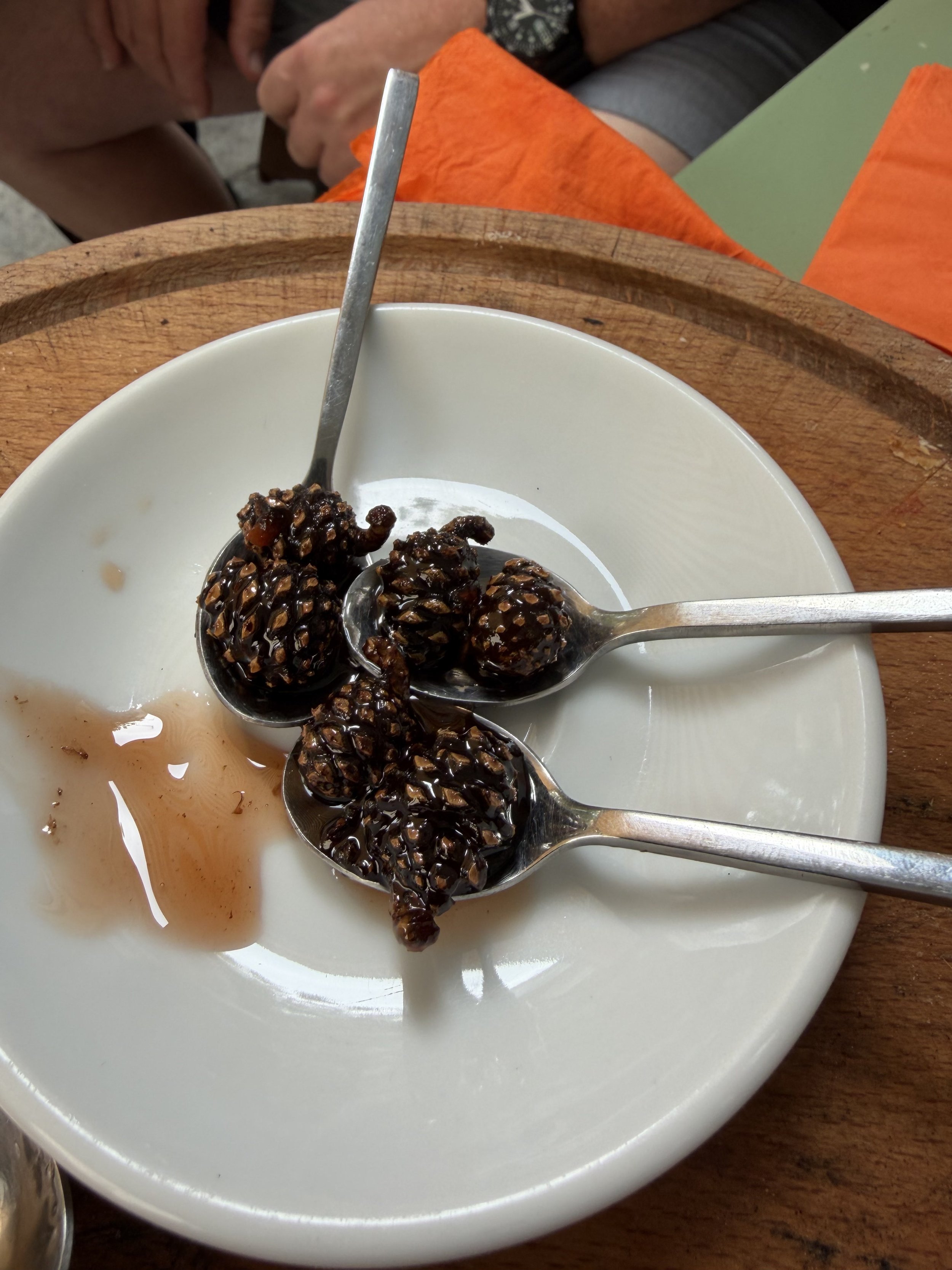 After one of our first meals in Greece, we were served pine cones soaked in honey! Not an olive in sight!