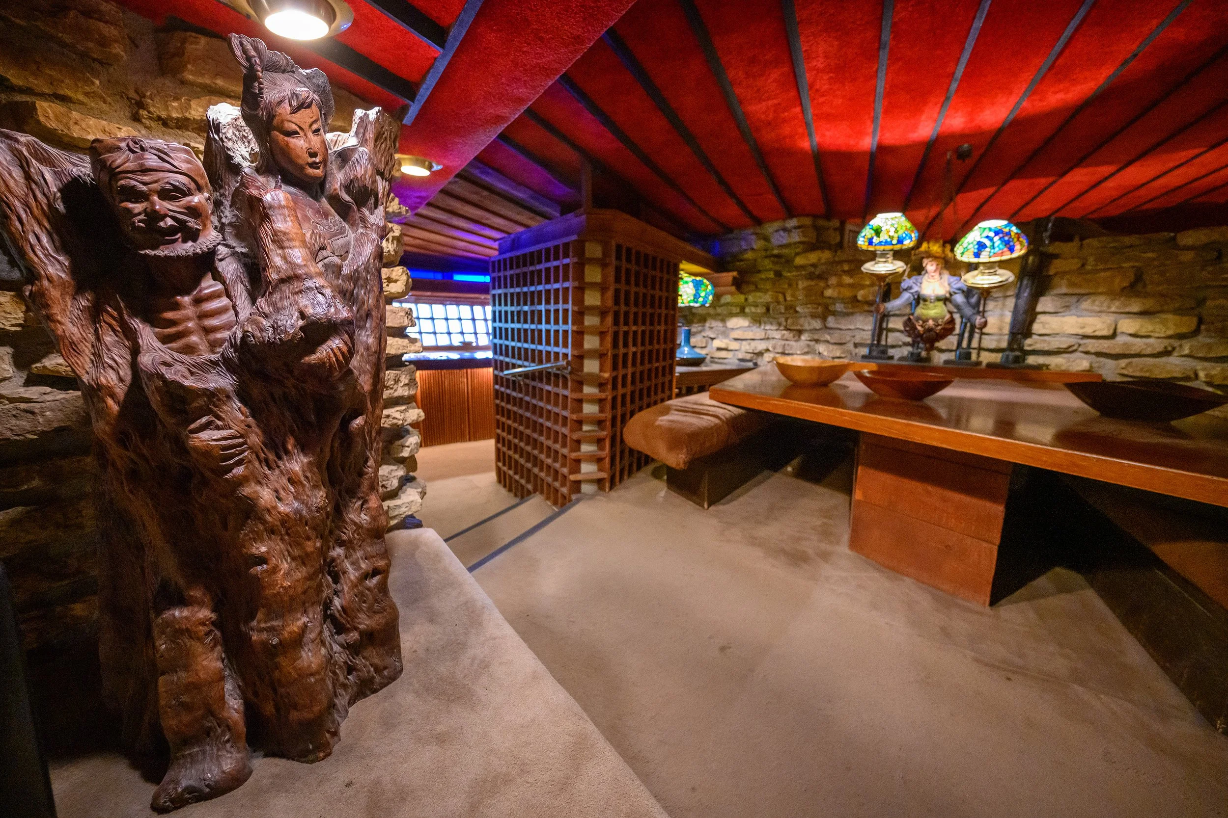 We found an interesting contrast in architecture in Spring Green- Taliesin, a Frank Lloyd Wright masterpiece sits just up the road from House on the Rock, a folly of architecture designed by Alex Johnson, an heir with lots of time and money, but no formal training. We had been gifted the Atlas Obscura, a fun book lists unusual “sights” and oddities that can be found everywhere in the world by the friend we were headed to see and House On the Rock, was listed as an attraction to see. So of course, we had to stop!
