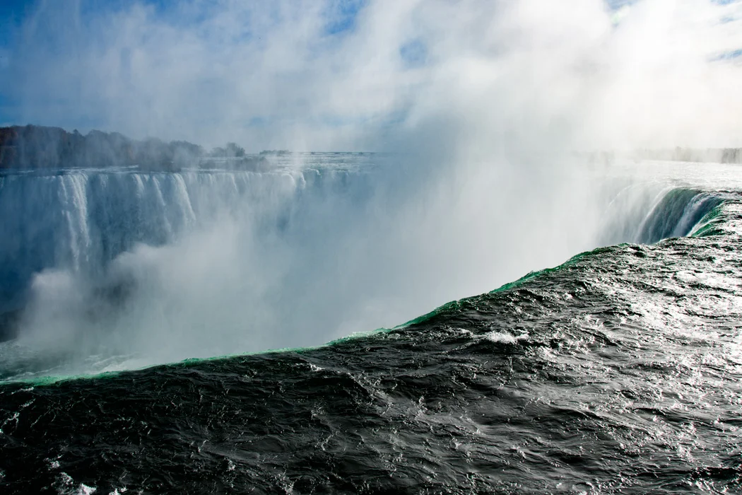 The power of the Horseshoe Falls can be felt in the spray coming up in the faces of the tourists standing against the railings on the Canadian side. Sometimes the direction of the spray can create a fog that obscures the view!