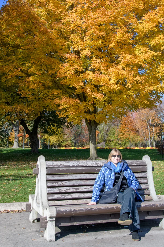 Yours truly opted for the 3-D realistic, spectacle of Niagara Falls and fall foliage from a comfortable FREE bench along the walkway in Niagara Park! Realistic spray from the falls included!